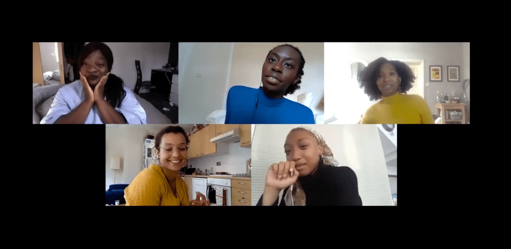 I remember sort of going into this stage thinking ‘how am I going to do this with very minimal set with all these things that I wanted to put in?’ You couldn’t, because we just didn’t have the budget or the facility to do that, so we kept it very simple. I didn’t want to stray too much from what we did on stage because everyone listened when we did it on stage and I wanted the same thing. So the only thing I really did was go ‘okay, I think we can serve it in different places so that we get that sense of not just one conversation, because how else do you make it interesting on Zoom? Let’s just change the set, and that’s the quickest and easiest thing for everyone to do at home. Because you can’t really have group rehearsals, everyone’s just got to be with what’s around them so we were like ‘look, we can change tops, we can change hair and no one has to worry too much about props’, because again in lockdown, I didn’t want the actresses worrying too much about anything other than the dialogue. I thought ‘it’s easier for me to edit as well, if everyone is just in squares and that’s all that changes’. So I just imagined three or four scenarios as to where these conversations would happen throughout that time and my goal was to keep the words front and centre.