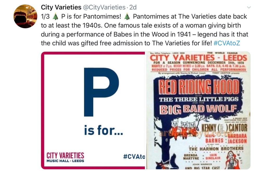 5. The Lockdown content. The City Varieties team took to lockdown conditions like few others. Very quickly, they launched the A-Z series, which saw the theatre’s social media pages posting daily snippets of history and quirky facts to give those of us desperately missing our favourite venues just enough of a daily theatre hit to save us from total cold turkey. It’s the kind of quick-thinking and adapting to the times that has surely helped to sustain this venue for its impressive 155 years. Head over to their Twitter page to catch up on all of those A-Z posts here.