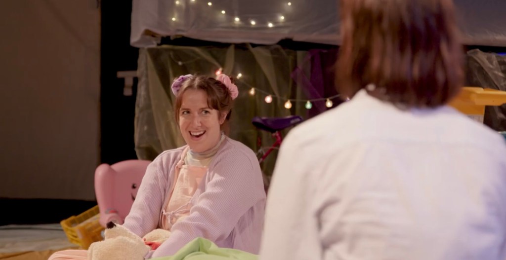 Tom Rider directs, keeping the piece pacy when needed, but more importantly, allowing the dialogue and action to linger when needed too. The audience is swiftly brought straight into the heart of the action, with tight shots capturing the claustrophobia of the situation against the backdrop of endless toys and make-shift den ‘walls’ of Sophia Charap’s set design.