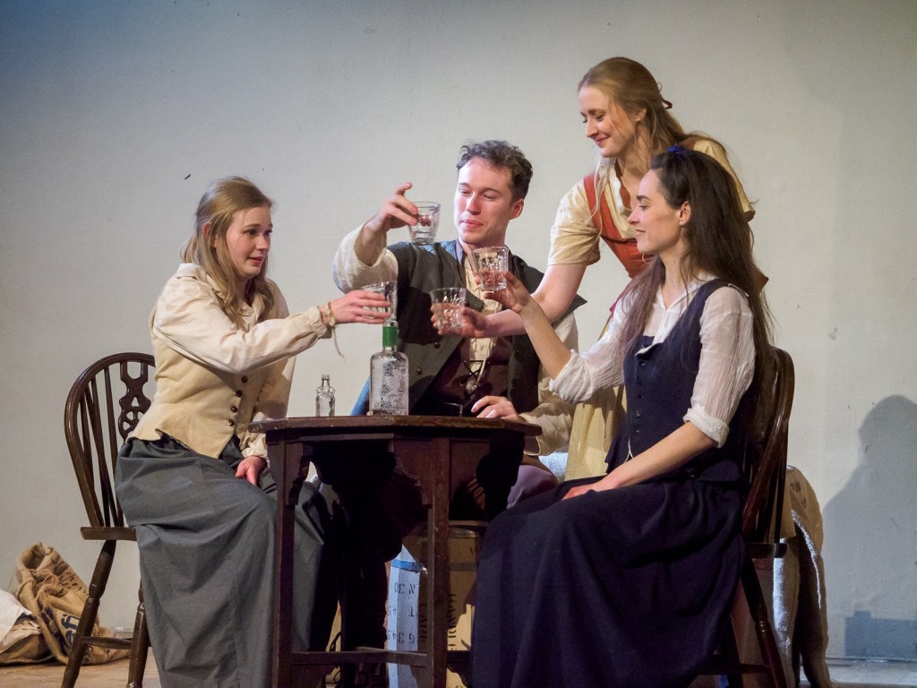 Throughout the play women are labelled as “common whores” and treated as subordinates. Gillard and Turner explore a spectrum of violence towards women: the use of brute physical force, verbal abuse and psychological damage. They show that violence appears in sometimes the most disguised formats and can happen in and amongst women themselves, but also that women hold the key for the to enact authority amongst themselves also. Jack (James Green) is the handsome, charming knight who vigorously throws himself into Abigail and Mercy’s world under the guise of care and kindness. His intentions appear innocent however the extent to his manipulation is yet to be witnessed on stage. Through coercive control, his character becomes an unbearable force who looms around every corner.