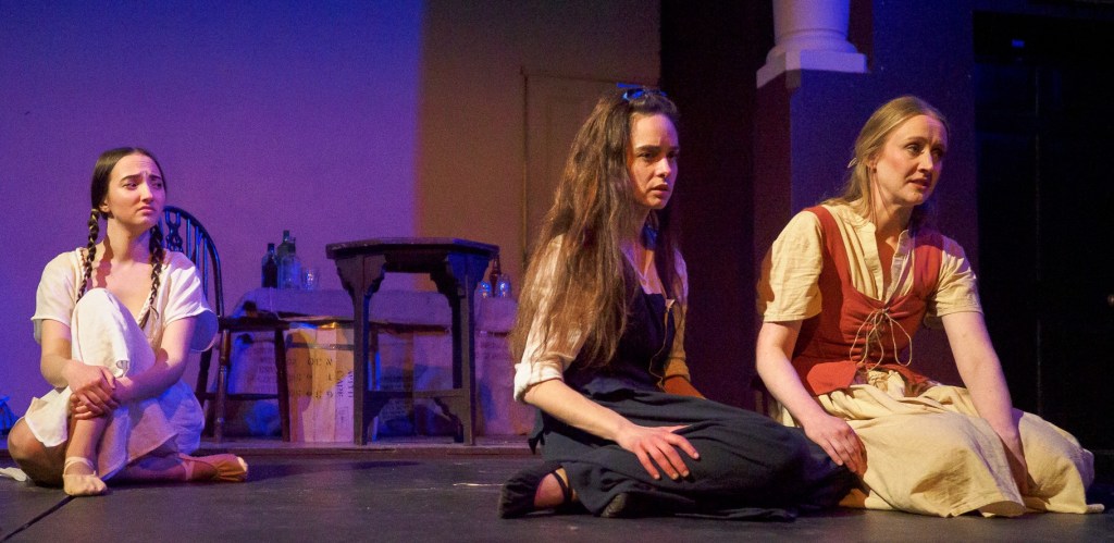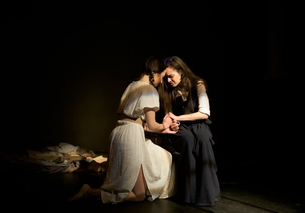 The play begins with sisters Abigail (played by Laura Turner) and Mercy (played by Lucy Sheree Cooper) on the run from the Salem Witch Trial. From the offset it is clear Abigail is placed in a maternal role as she guides the easily led and impressionable Mercy into a boarding house. During the course of their stay in the house, Abigail is forced to reckon with her past and confront the demons that follow her. In the first half of the play, we are introduced to Milly (played by Sarah Isbell) who later on becomes a key component to the story. This is a play about ego, sexuality, guilt and redemption; The frivolity of man are distractions from the forbidden desires that haunt Abigail’s waking moments.