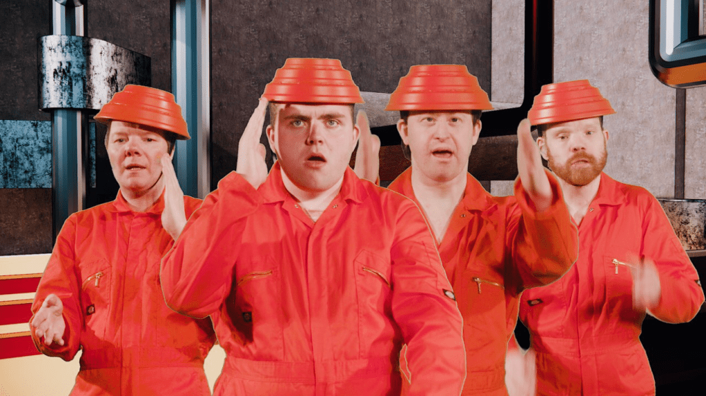 A cast of four – Chris Moules, Andrew McLeod, Cameron Thompson, Andrew Robson and Andy Stafford – take on this whistle- stop tour of the don’ts and dont’s of representation. Their energetic delivery of the choreography and their tongue-in-cheek take on the dialogue give the production much of its charm. In fact, one of the crowning highlights of this piece is the veritable treasure trove of bops! Taking cues from lines of movie dialogue, our actors bounce their way through snippets of toe-tapping tunes which not only serve to entertain but neatly serve to set the pace.