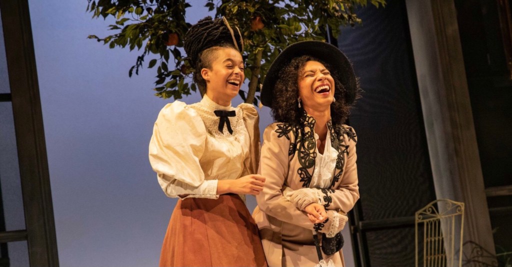 It’s clear that the creative team have one streamlined vision here. Designer Lily Arnold facilitates some fabulous scenes of farcical entrances and exits while also generously drawing our eye to the grandeur of gold-framed ancestors lining the walls – an addition from Autograph, an organisation running an exhibition which spotlights the presence (and importance of acknowledging that presence) of a multi-cultural Victorian Britain.