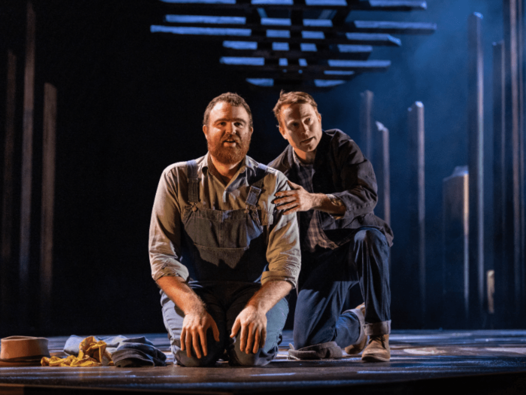 John Steinbeck’s Of Mice and Men, once a GCSE text staple (remember the spoilers helpfully left behind in the margins by the outgoing Year 11 students?), is currently finishing up its tour at Leeds Playhouse. Following an unlikely pairing of itinerant workers during the Great Depression, this is a story of hope and resilience but also discrimination, racism and loss. Iqbal Khan’s production remains faithful to Steinbeck’s original, with some important updates for a 2023 audience.