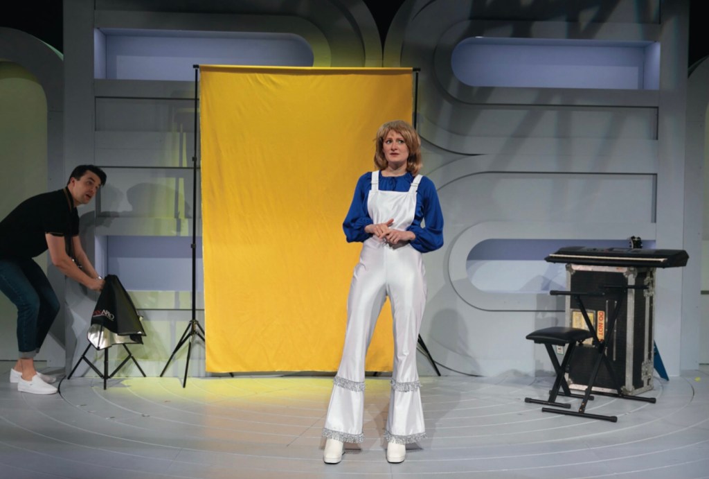 Janet Bird’s set shines (sometimes literally), making great use of a revolve to swiftly move us between scenes and giving us a seamless carousel of set changes – with each scene segue jazzed up by Andrew Exeter’s Eurovision-inspired lighting and snippets of ABBA’s most popular tracks.