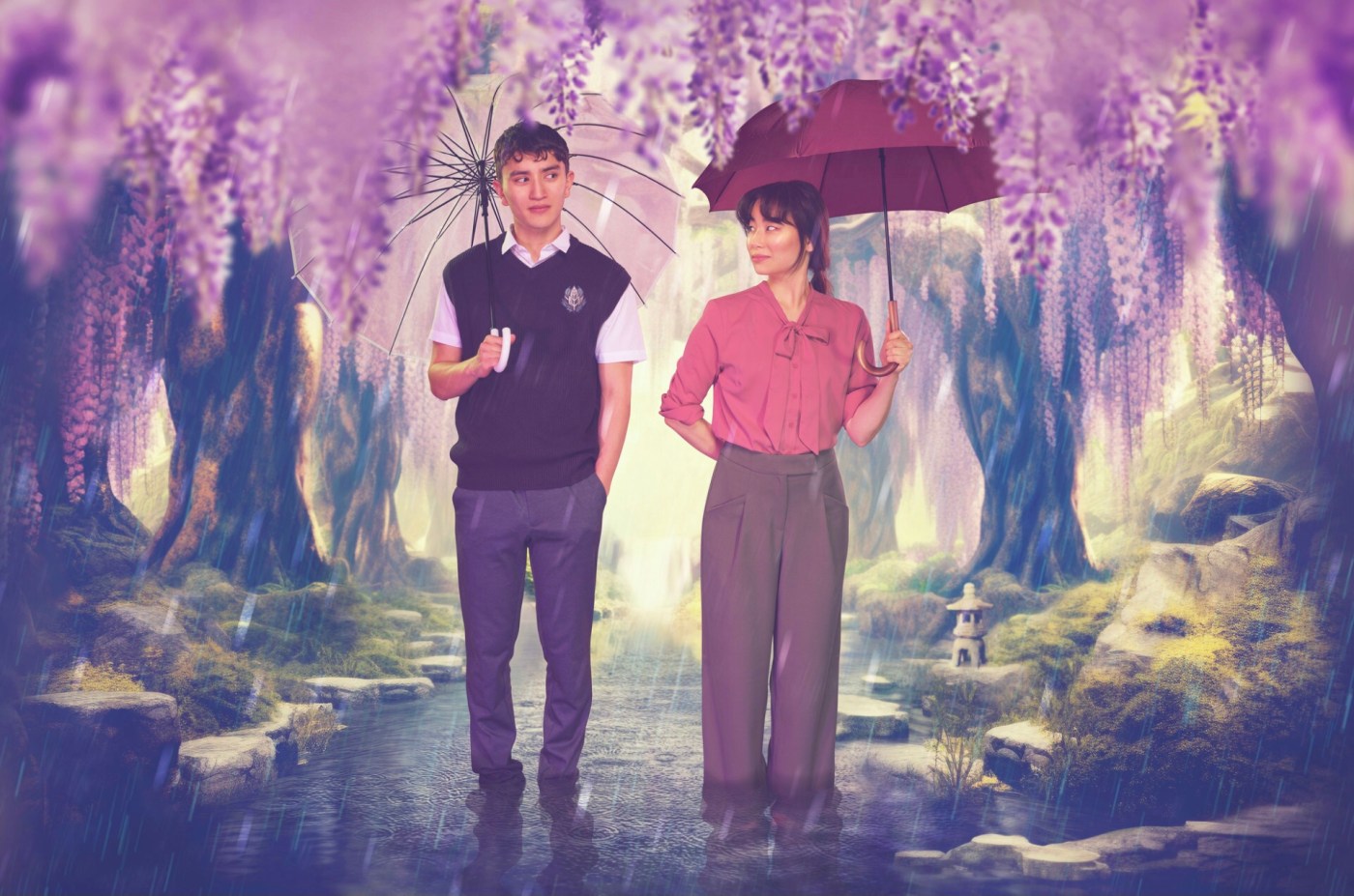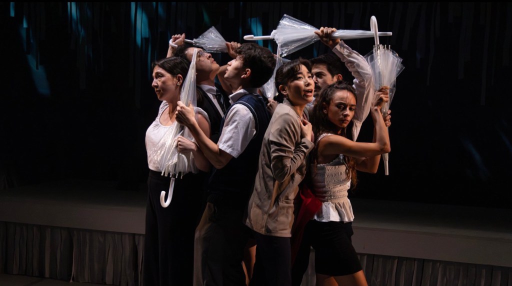 The Garden of Words is an adaptation (by Alexandra Rutter and Susan Momoko Hingley) of Makoto Shinkai’s anime feature of the same name. While I’ve not seen Shinkai’s version, I imagine it’s quite similar to its stage adaptation in terms of form: a Love Actually-esque, ensemble piece in which seven characters are all seemingly interconnected. My first thought on this: how could we possibly invest fully into all seven characters in under two hours? But, once again, they somehow pull it off.