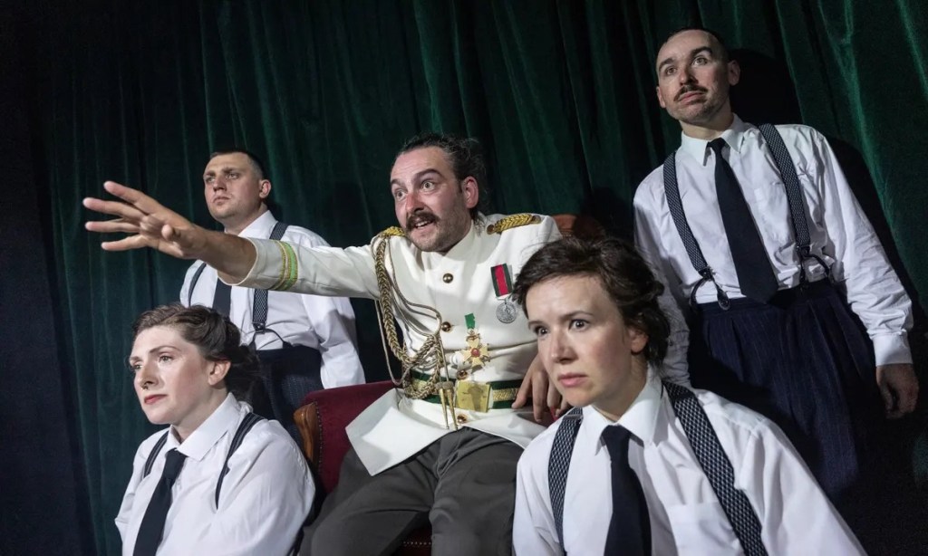 Right from the beginning, we are brought straight into action. Boris must chose a side: will it be the Nazis or the Allies? Before he can make his final decision, we are given Boris’ origin story by the show’s multi-talented ensemble. It turns out that Boris is not even Bulgarian, and his father, Ferdinand, was not initially in line to inherit the throne. A raucous re-enactment of Ferdinand’s journey to kingdom is the first example of the aforementioned modern commentary, as an anonymous horseman (at this moment, played by Clare Fraenkel), on a quest to find the next, most suitable king for Bulgaria, questions, ‘Are you white? Are you male? Can you ride a horse’? All of Ferdinand’s (though he plays many parts, this time played by Lawrence Boothman) responses are a defiant ‘Yes’!, and just like that, he has the job.
