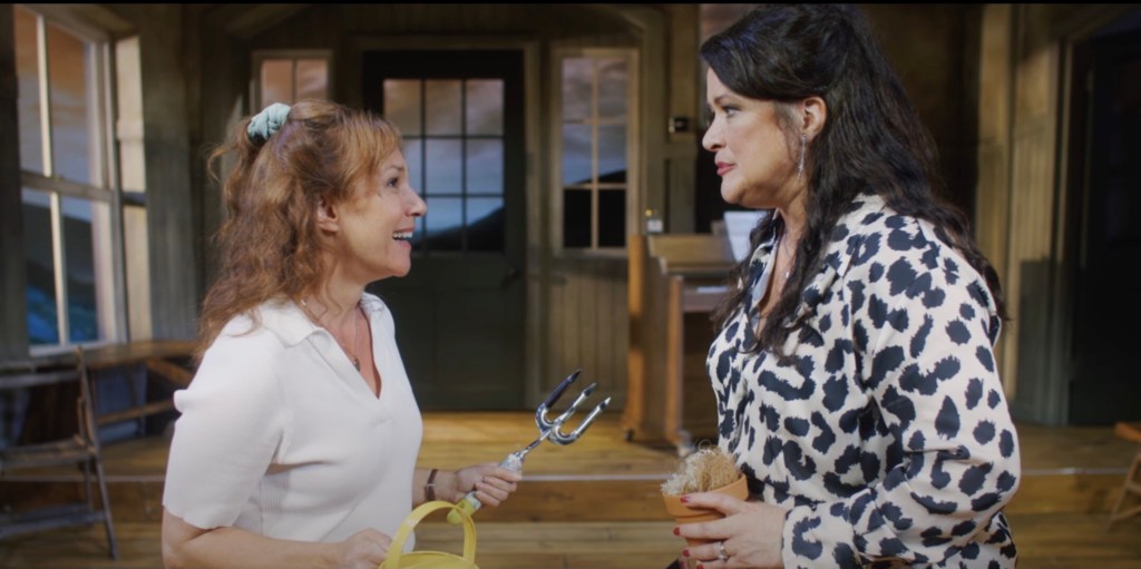 The overall impression of this revival, directed by Jonathan O’Boyle, is that it is more of a simplified, slimmer and more static version than previous renditions. This somewhat comes down to Gary McCann’s set, which places us in a classic village hall space with high ceilings, visible rafters and a teensy kitchen area just about visible. It’s a fine and versatile space which instantly creates the right ambience for sparsely populated Women’s Institute meetings. But for the most part, the cast stand around in little gaggles or sit in a semi-circle of chairs in this bare space, which feels like many a wasted opportunity for something sparkier to be happening. There are some beautiful backdrops of God’s Own Country and fields of sunflowers to enjoy, which do offer some brightness, but as it is, it feels very close to a concert staging of a musical at times and I think the cast have the clout to deliver more.