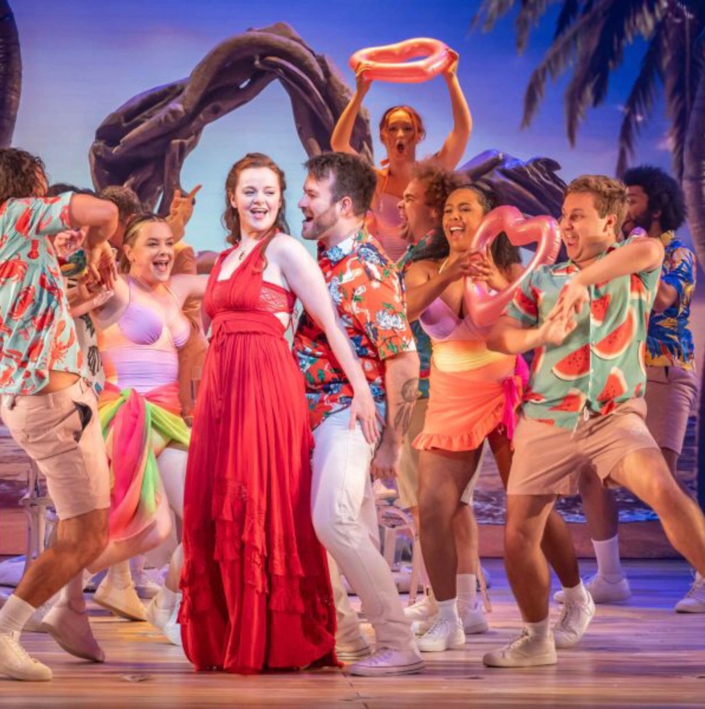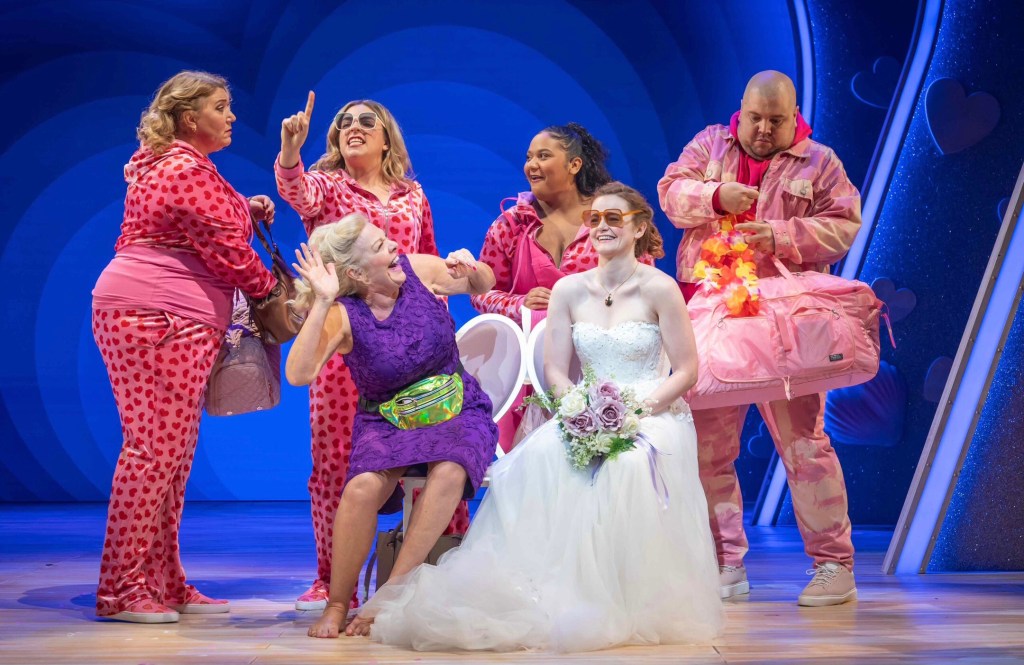 Jamie Chapman, Elliot Broadfoot and Giovanni Spanò lead the way with comedy offerings as the overly-attentive resort owner, the flamboyant guy-pal on Team Bride and the groom’s comically over-pumped best man respectively. Spanò also offers some of the best vocals to be found here, along with Sumner and Kayla Carter as gal-pal Bonnie. And the music is generously littered throughout; aside from the title ditty, this show boasts 24 hits from the 80’s and 90’s, penned by hit-makers Stock Aitken Waterman. From “You Spin Me Round” to “Never Gonna Give You Up”, there are plenty of toe-tappers to enjoy.