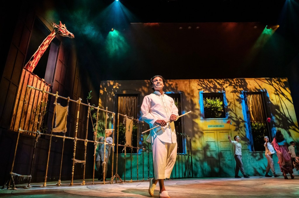 Lolita Chakrabarti adapts Yann Martel’s gripping (and Booker Prize-winning) novel as a neat frame-tale in which Pi is under hospital care with support from kindly professionals (Keshini Misha, Chand Martinez) while being interrogated about his bizarre story of survival by a corporate type chasing the bottom line (Lilian Tsang). He assures his listeners that his miraculous tale of 227 days at sea is truth, and we are whisked back in time to see his story play out.