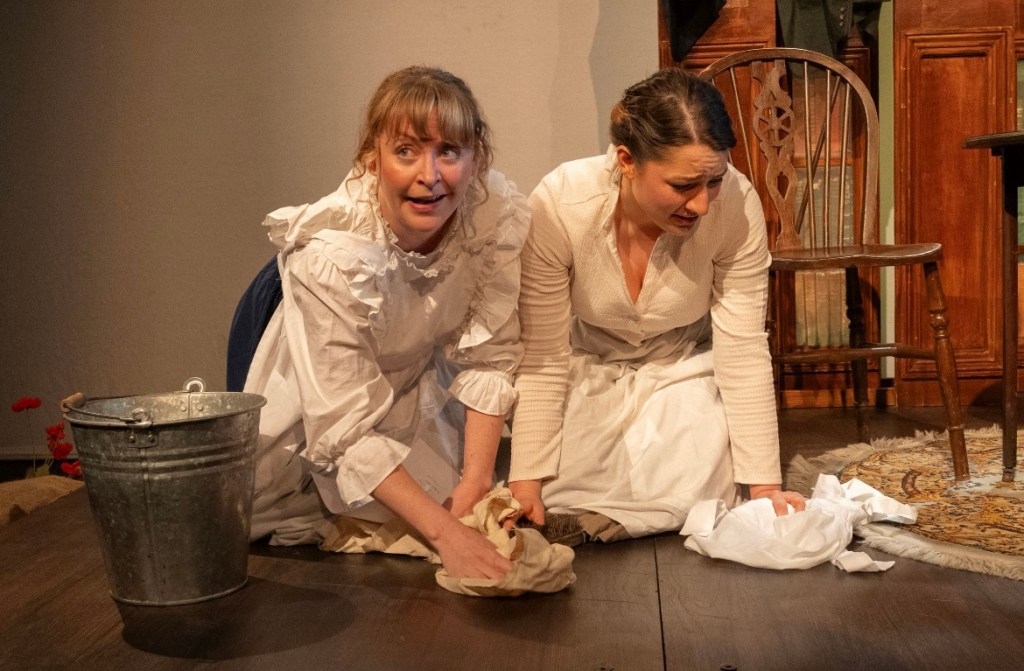 That’s not to say that Victoria, in her desperation to cling to remnants of safe normality via tantrums over status, remains irksome throughout. Lane does well to soften her armour in Act 2, and a similar transformation for Edie takes place, with Cook scrapping the lovable klutz (think The Vicar of Dibley’s well-meaning Alice) for a woman who is finding her feet and her sense of self beyond the job. Meanwhile Morley’s Nellie is an entertaining and energising force throughout but again, comes into her own in the second act.