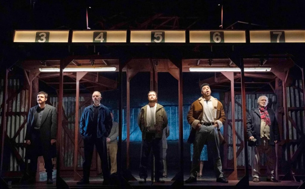 Gnawing at each man is a painful feeling of inadequacy and failure – yet they persevere through countless trials, seeking the validation of an honest, reasonably paid job at a time when chancers were happily preying on the vulnerabilities of the situation. Tempers flare (Fight direction: Rachel Brown-Williams; Movement direction: Rachael Nanyonjo) and hearts break in turn, but ultimately the enemy remains the system.