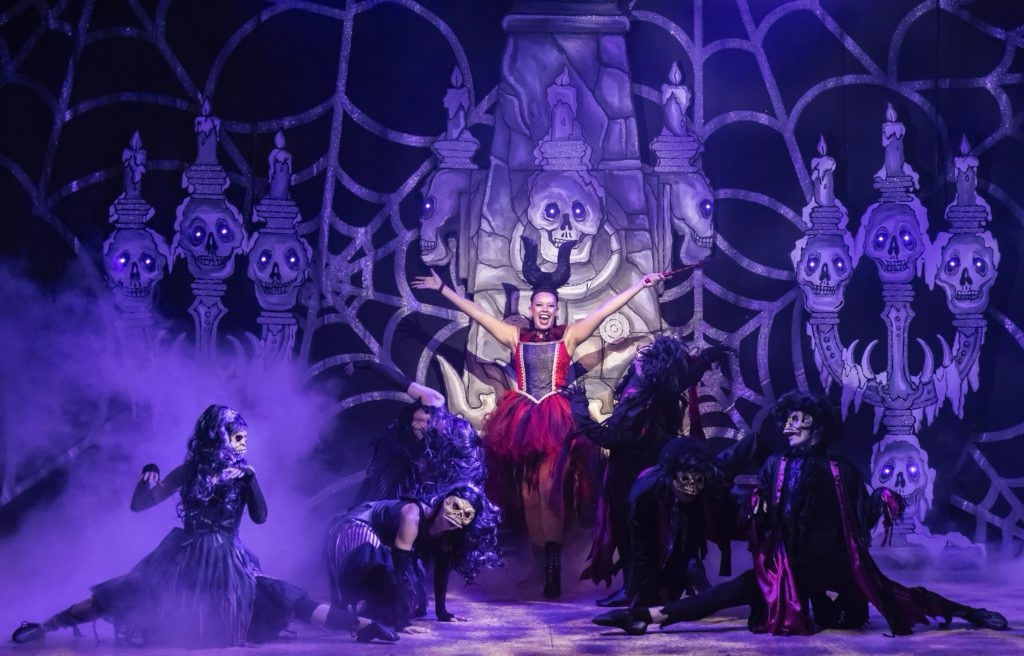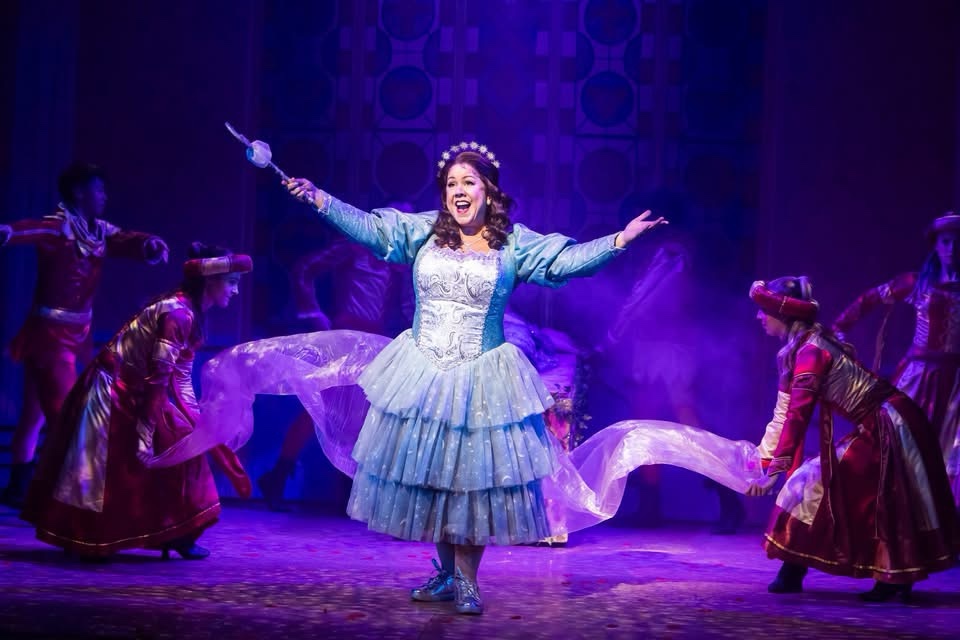Aurora is of course joined by a protective fairy, played by a delightfully twinkly Jennie Dale, the dashing love interest Prince Michael, played quite humbly and gently by Christian Mortimer, and countered beautifully by the swaggering, smirking but very fabulous Jocasta Almgill as the meanie curse-caster, Carabosse. And the ensemble are a happy bunch perfectly pitched for panto season, making light work of Hayley Del Harrison’s energised choreography and generally working very hard to keep energy and panto pomp high. It definitely fits the bill for fun, family-friendly festive entertainment!