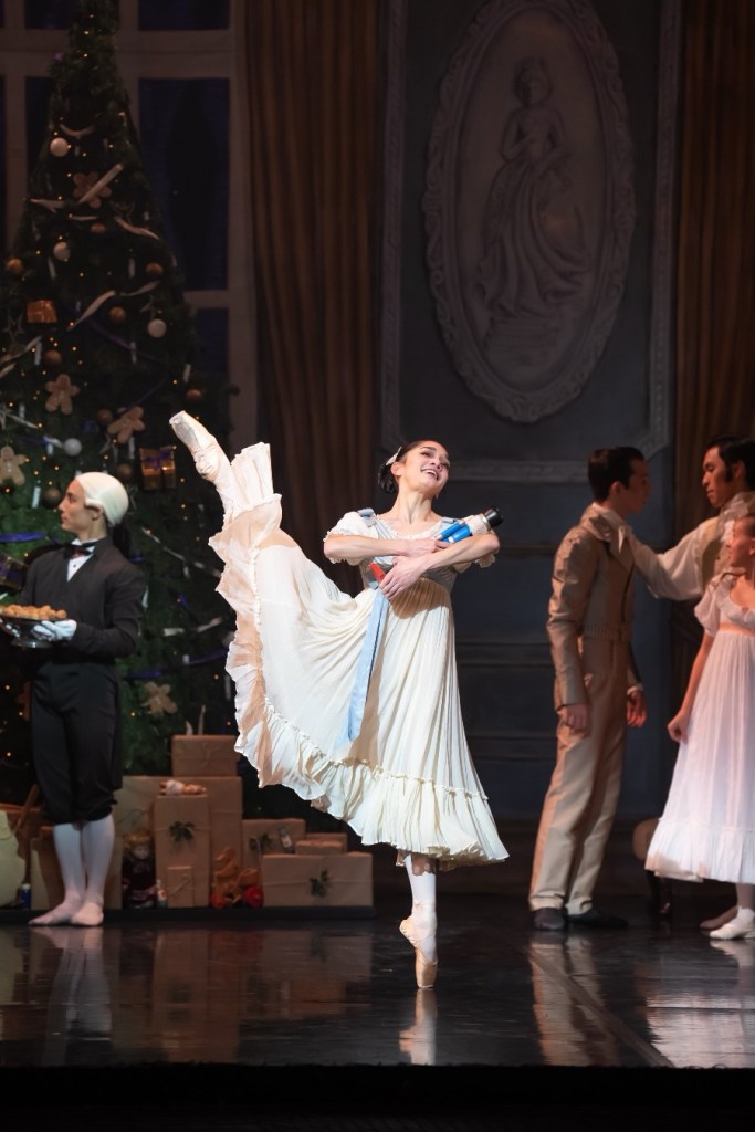 Rachael Gillespie is Clara and she is perfectly cast as the bright-eyed, excited child gliding her way through a weird and wonderful unknown world. She’s joined by Harris Beattie as the Nutcracker Prince who comes to life, and the pair create real magic with their sequences. And speaking of magical pairings, Saeka Shirai and Jonathan Hanks are wonderful both as soloists and together as the Sugar Plum Fairy and her Cavalier.