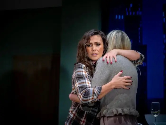 In this version, directed by Gordon Greenberg, we are very much in 2026, with much of the plot hinging on technology and modern dynamics of family, friendship and work. There’s familiarity to this, rather then escapism, and while that does lend itself to enjoyment of the show in many ways, it also lets some awkward laughter seep into proceedings from an audience that didn’t seem to be much on side for the dramatic thriller moments of the second act. In truth there are a few surprising moments that feel random enough to invite titters, which could do with more development, yes, but for the most part, the story and cast stand on pretty firm ground.